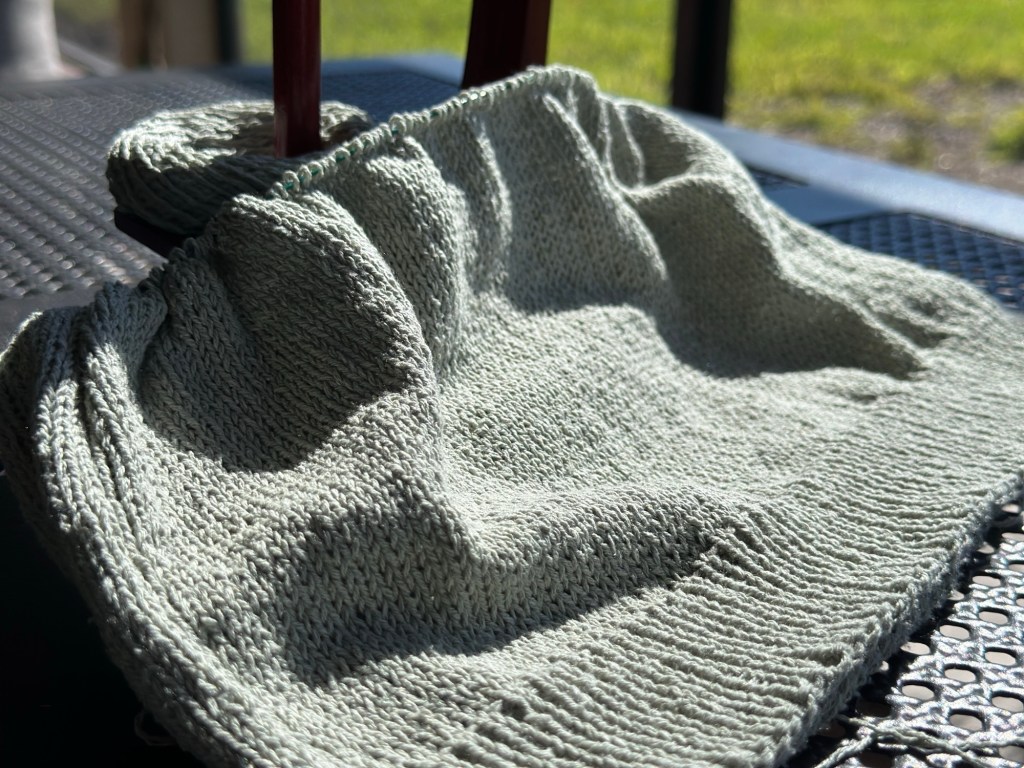 On this particular voyage, I packed my Tip Top Tank and my iPad, with only knitting on my mind. After spending the first 45 minutes on my project and listening to the beautiful birdsong from the trees overhead, I switched to magazine-reading on the iPad.